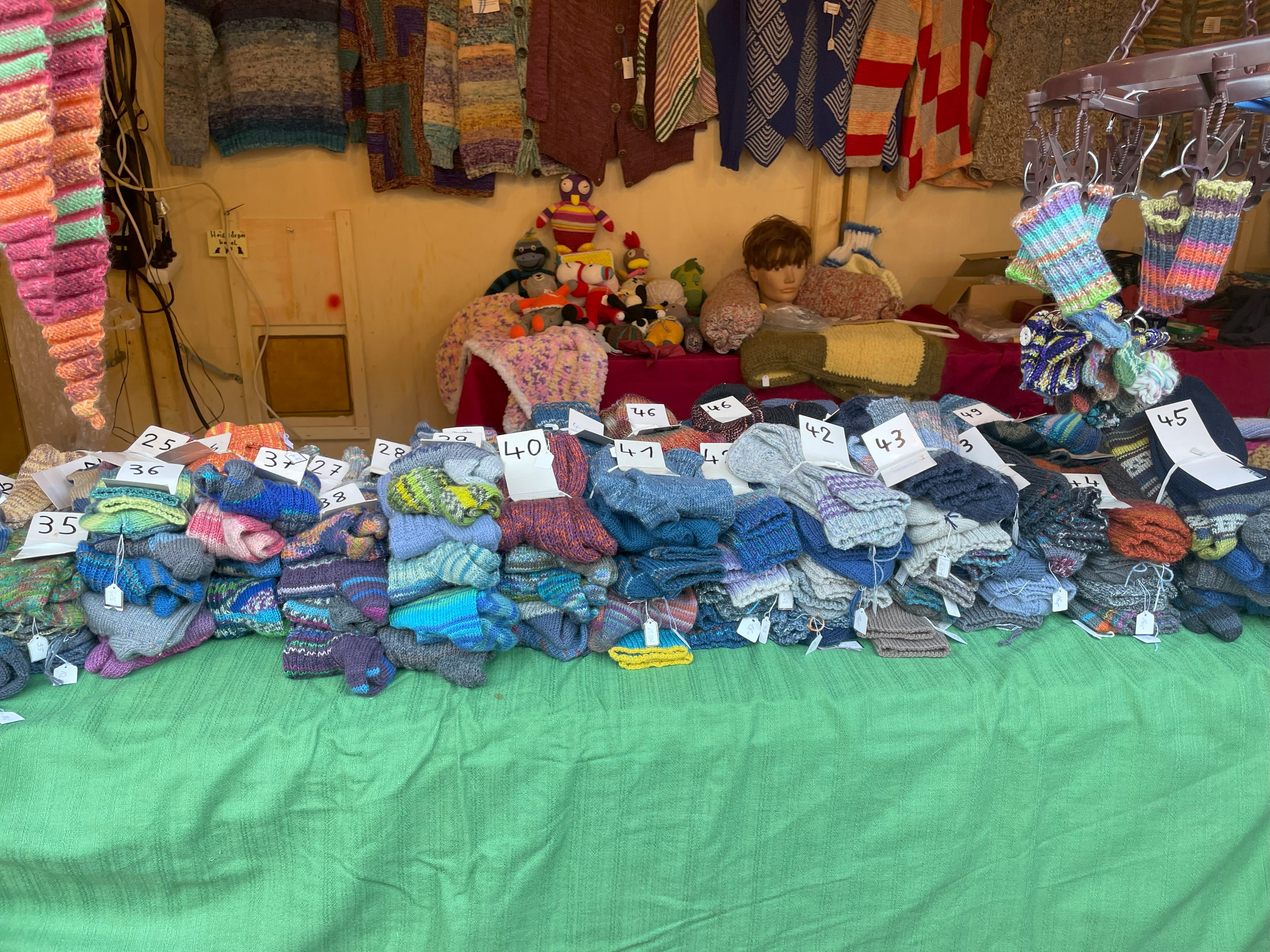 Die AWO stellt die Wolle und wir zaubern ehrenamtlich Socken für den Ortsverein, die dann am Bazar und auf dem Weihnachtsmarkt verkauft werden. Der Erlös wird für die Seniorenarbeit (Kaffeenachmittage, Freizeiten) verwendet.